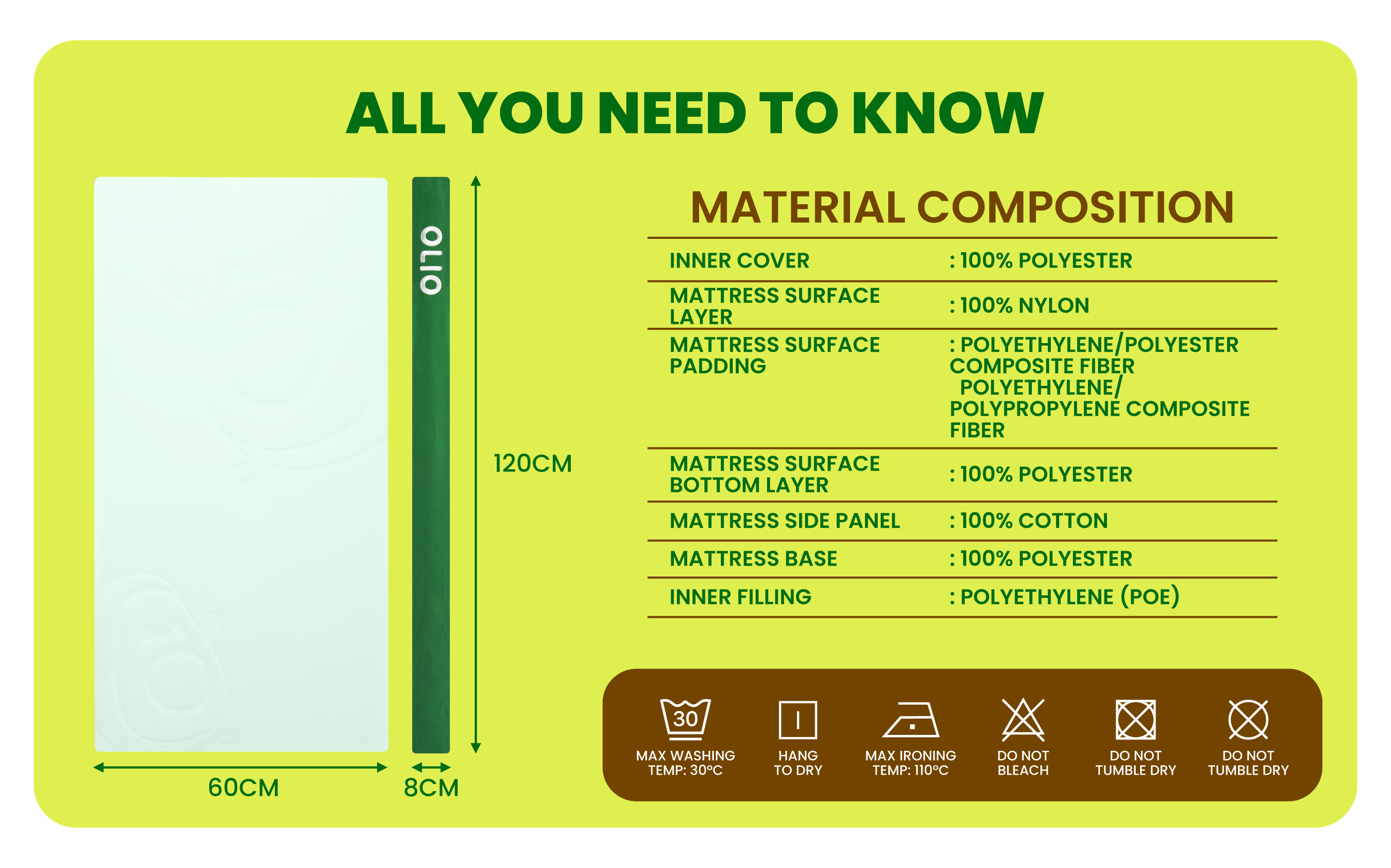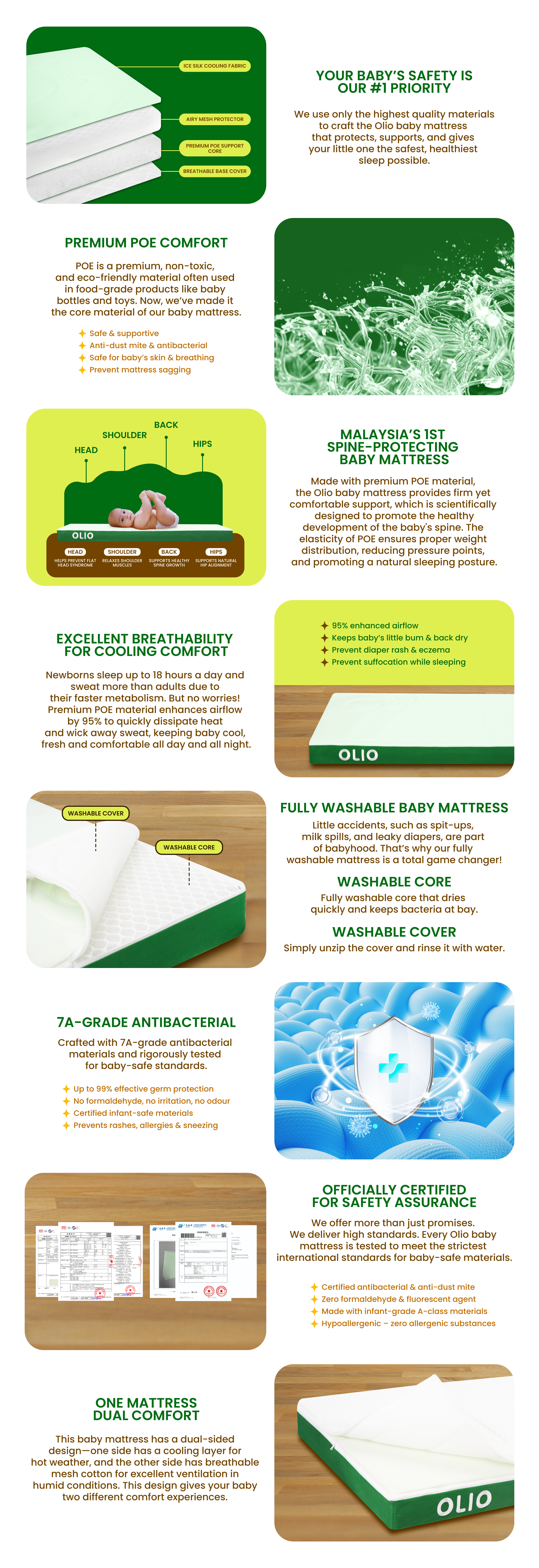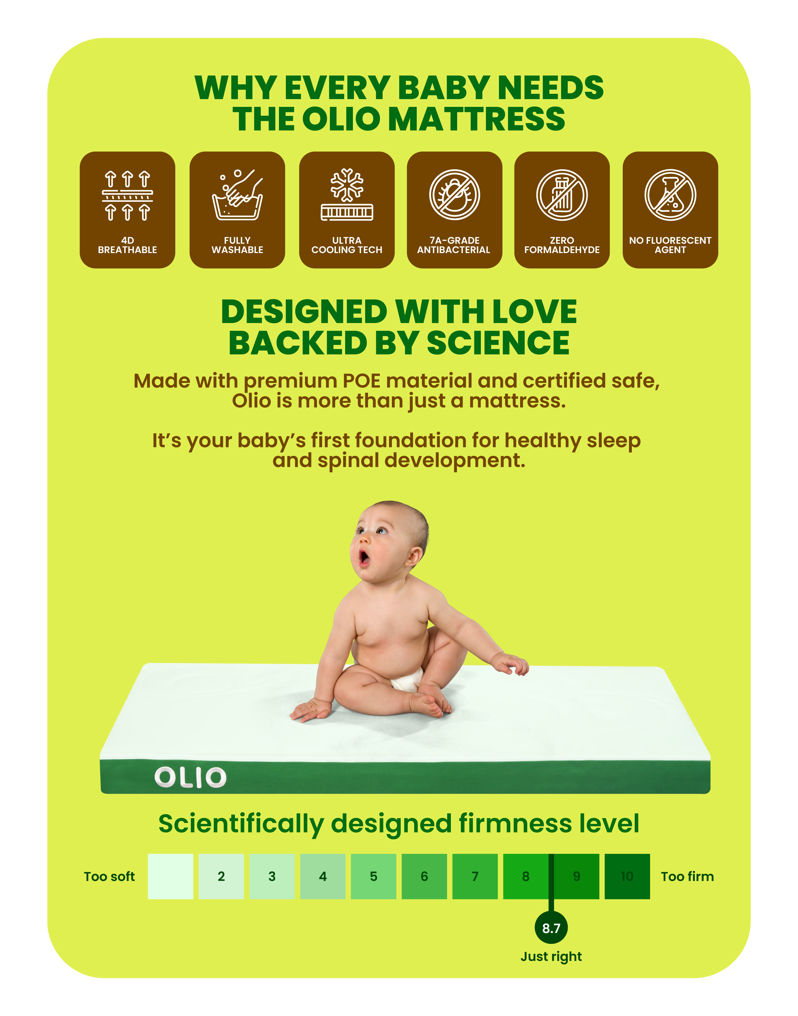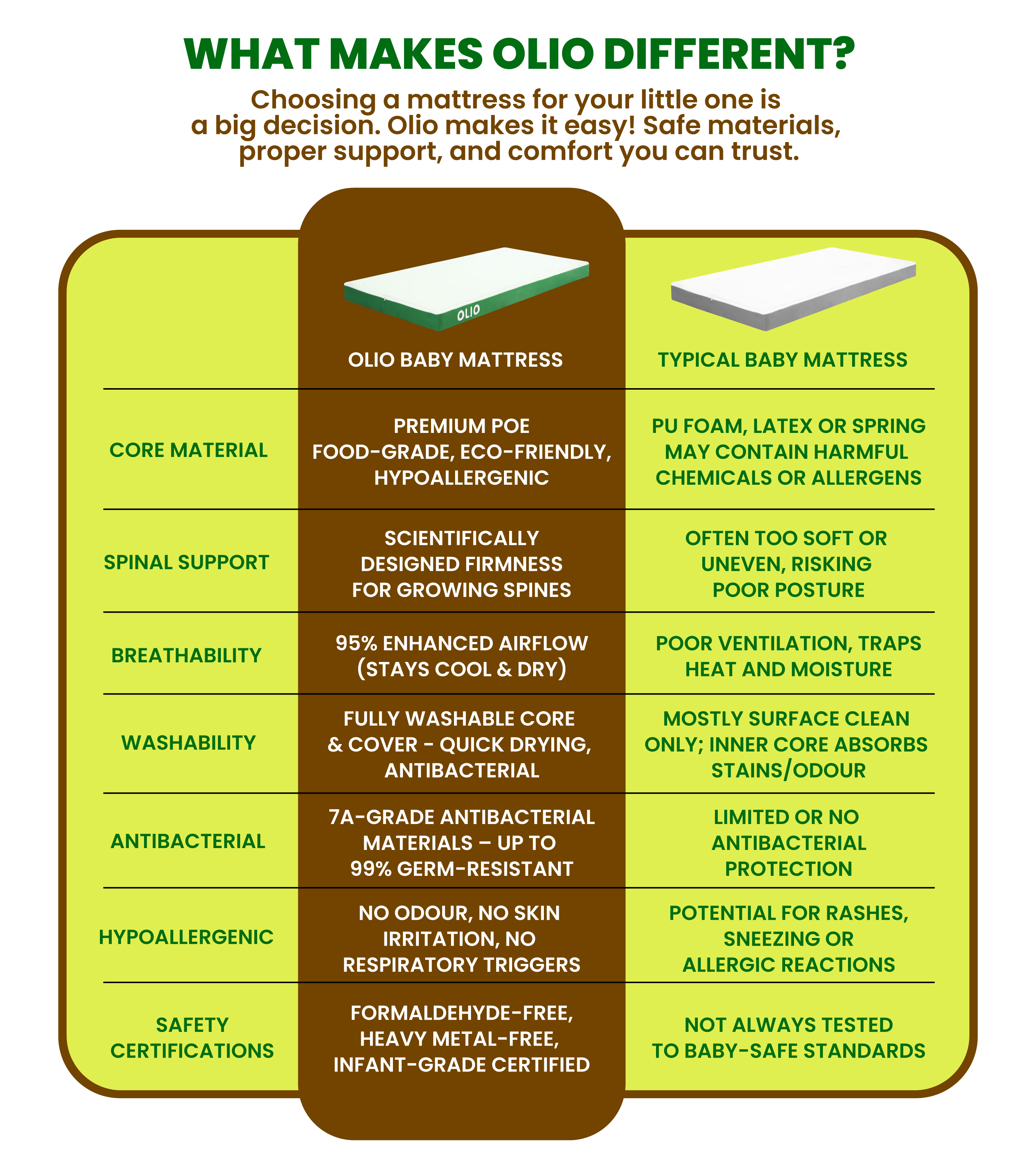 OLIO Premium POE Spine-Protecting Fully Washable Baby Mattress (Cot Size)